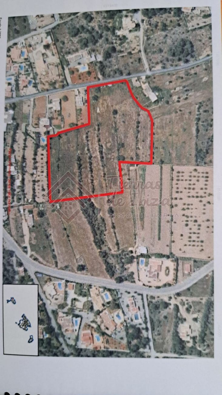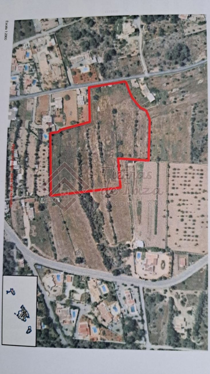 Se vende terreno de 19,000 m² en Cala de Bou, una de las zonas más tranquilas de la isla. Incluye proyecto de obra con licencia, listo para construir una casa de tres niveles con sótano, planta baja y primera planta, piscina y amplias terrazas. El terreno es rústico urbanizable, sin bosque, con tierra de cultivo, árboles frutales y muros de piedra. Tiene acceso a alcantarillado y electricidad a pie de terreno; posibilidad de solicitar permiso para pozo. Con supermercados, farmacias y colegios cercanos, además de vistas al mar desde la primera planta y sol todo el día.