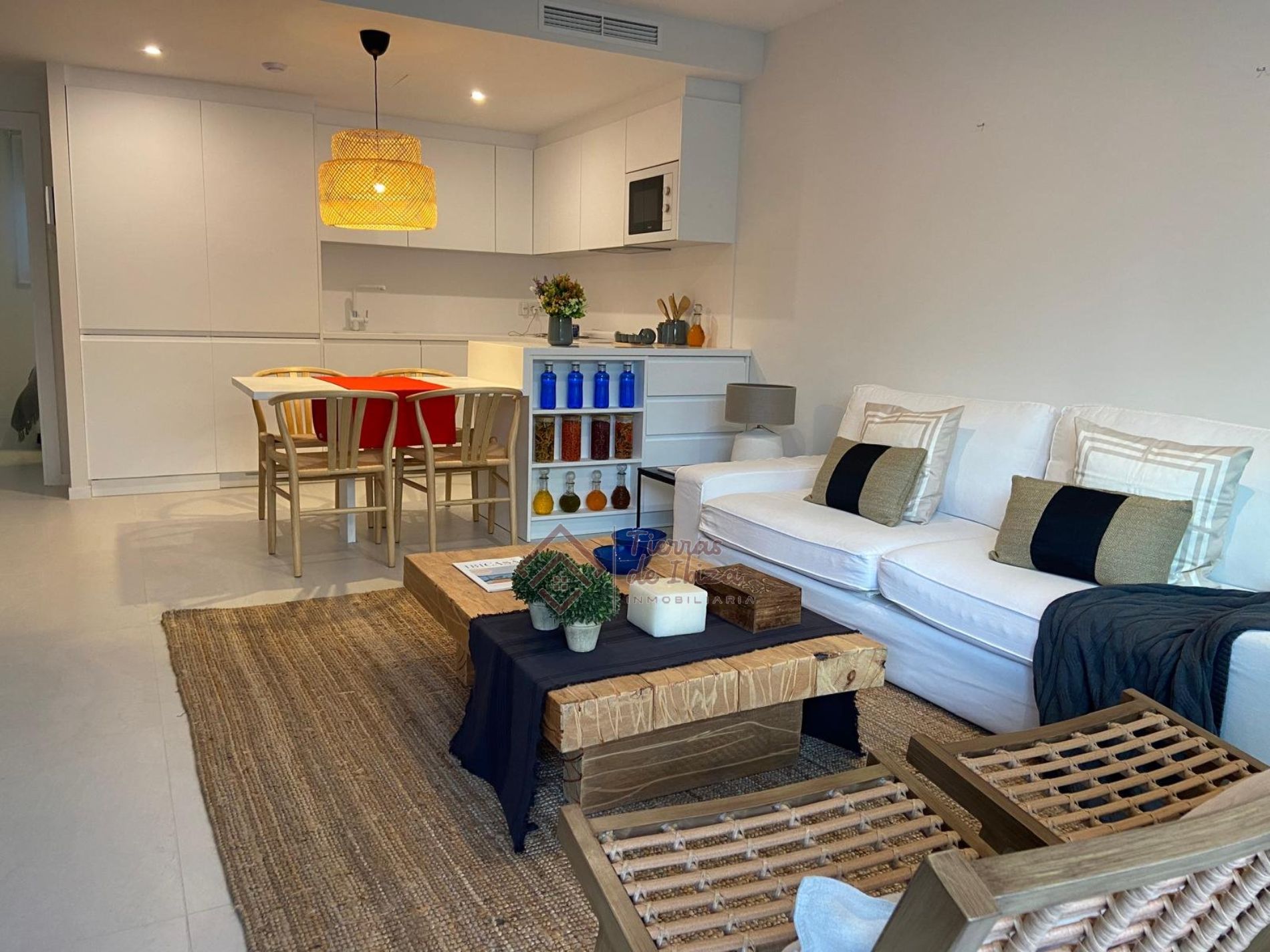 Descubre este encantador Planta Baja en Sant Antoni de Portmany, una joya moderna construida en 2021 con 100 m² de espacio bien distribuido. Cuenta con 2 acogedoras habitaciones y un baño completo, ideal para la vida familiar o como escapada vacacional. La cocina está totalmente equipada y amueblada, lista para que despiertes al chef que llevas dentro. Disfruta de exteriores impresionantes con una terraza de 20 m² y un porche de 7 m², perfectos para relajarte o entretener a tus invitados. Además, la propiedad incluye comodidades como aire acondicionado, piscina comunitaria, trastero y parking. Plaza de garaje y trastero incluido en precio, opcional otra plaza y trastero precio a pactar.